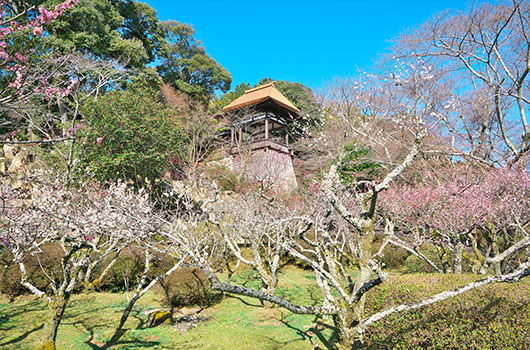 石山寺では現在、「石山寺 梅つくし」を開催しています。梅園では約400本の梅が咲き誇り、境内一帯には40点の盆梅が展示されます。